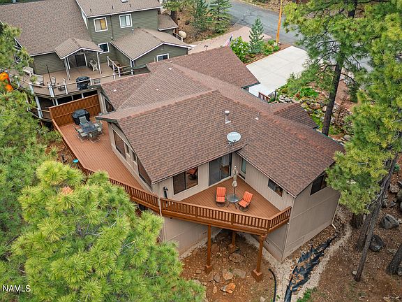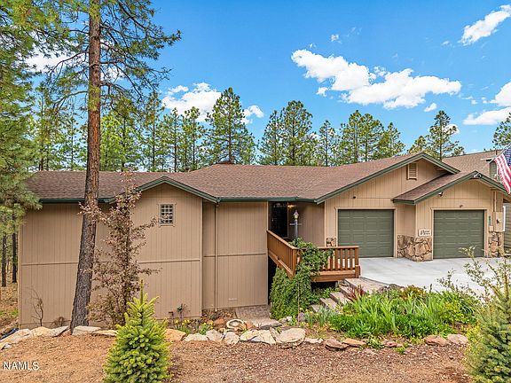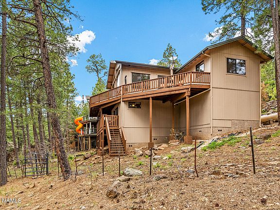Have you always dreamt of owning a home that BACKS the NATIONAL FOREST? Love the idea of a private hiking path right out your back door? How about decks that span the length of the house? This custom built cabin is located in one of the most sought after neighborhoods in Munds Park. The generous sized great room has a wall of windows, vaulted ceilings and a toasty pellet stove. The main living area opens to the recently upgraded and beautifully equipped kitchen with new cabinets, new quartz countertops, new appliances and lighting. As a bonus, the primary suite, attached bath and walk-in closet are also on the main floor. Other features include a second viewing deck on the lower level that accesses three more bedrooms and a full bath. Additional upgrades include a new heat pump and central air conditioning system, fresh paint inside and out, recently stained decks and a 14'x32' workshop.