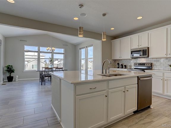 Highly desirable ranch home located on a quiet tree lined street. Why wait to build...move in now and still get that new home smell. This open concept floor plan is bathed in natural light and features numerous designer upgrades. A gourmet kitchen, complete with stainless appliances, quartz counters and custom cabinets will inspire you to explore the art of cooking. Generous master suite is a welcome retreat of luxury and restfulness. Spend time relaxing in the spa bath complete with a jet action soaking tub. Did someone say BBQ? Spend time entertaining family & friends in the large yard with an expansive covered patio. The finished basement features a guest suite, bathroom and huge rec room. It's the perfect space for movies, games and more. Located within the highly-regarded Douglas County School District. Within walking distance to park, trails & pool. If move-in ready is at the top of your list, make time to see this beautiful home today!