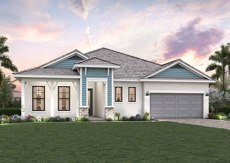 Under Construction. Welcome to the Ruby Tail, a beautifully designed floorplan by David Weekley Homes in Palmera that combines modern luxury with thoughtful functionality. This spacious home features four bedrooms and three and a half bathrooms, including a private en suite in the fourth bedroom—perfect for guests or multigenerational living. A large study offers the ideal space for a home office, library, or creative retreat. Flooded with natural light from numerous hurricane impact windows, the interior feels bright and airy throughout. At the heart of the home, you'll find a massive kitchen with an oversized island, an abundance of cabinetry, and a unique coffee and wine bar nook that adds a touch of charm and convenience. The open-concept living room flows seamlessly to the extended lanai through sliding glass doors, providing stunning water views and an ideal setting for outdoor relaxation or entertaining. The extra-large owner’s suite offers a true retreat with a spacious layout and an impressively sized walk-in closet. This home also includes lawn and irrigation maintenance, along with a TV and high-speed WiFi package, so you can enjoy low-maintenance living from day one. Community amenities are resort-caliber, featuring a sparkling pool, a state-of-the-art fitness center, pickleball courts, a golf simulator, and a full-time lifestyle director to help you make the most of every day. Located just 15 minutes from the beach, this home is your opportunity to embrace the best of Florida living in a vibrant, active community. **Your Clients are invited to enjoy pricing usually reserved for our new Team members during our Employee Pricing Event! From September 1-30, 2025, they’ll receive a 7% Home Discount on select Quick Move-in homes. Home must close by 10/31/25. Maximum discount not to exceed $40,000.