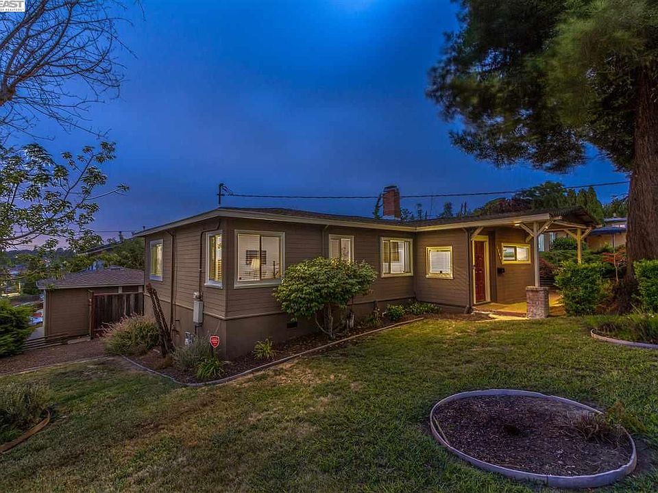Quaint and charming single story home on corner lot. Remodeled kitchen with island, granite counter tops, shaker cabinetry with under lighting, stainless steel appliances. gas cooktop, skylight. Remodeled Bathrooms with heated tile floors and skylights. Hardwood floors in open plan dining/family room with fireplace. Large master bedroom, attached jack/jill bathroom to guest bedroom with barn door, indoor laundry closet with door to side yard . Basement with utilities, abundant storage space, furnace, copper pipes. Upgraded electrical panel. Private covered patio, upper deck with magnificent views of bay and sunset. 2 car detached garage. Must see this wonderful property. Open house Wed 7/11/18 10-1pm
