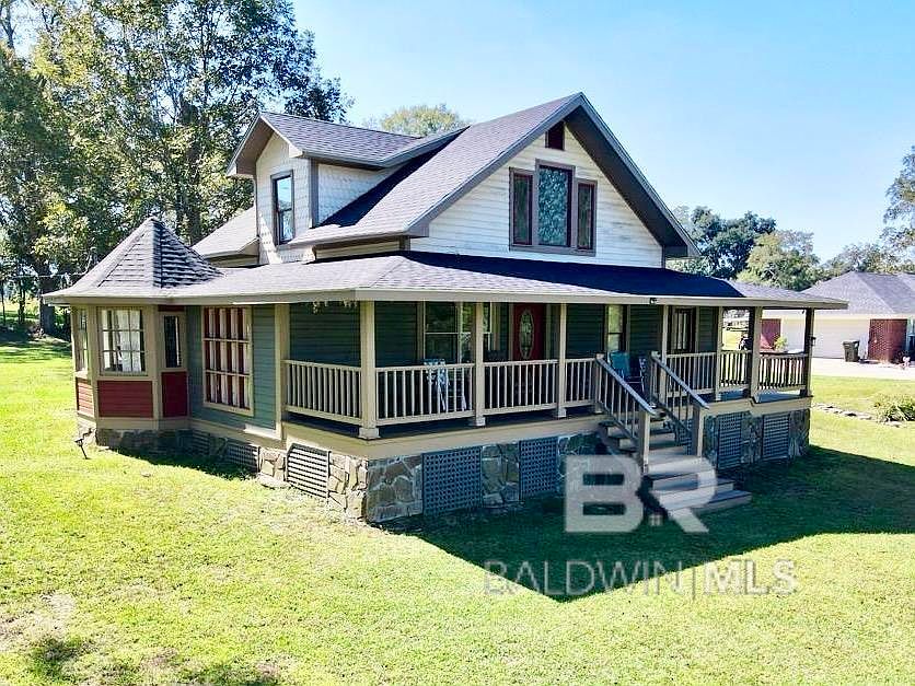 This gracefully restored two-story farmhouse sits on a beautiful one-acre corner lot down a dead-end street near the heart of everything in town. It could be the perfect opportunity for many to enjoy peace and privacy. The home boasts a 40-foot porch along the front of the house and is an ideal spot for sipping your morning coffee or relaxing in the evening watching the kids and dogs play. There are mature pecans and a citrus fruit bear tree. Step inside to discover an attractive foyer with a classic staircase leading to the upper level, setting the tone for the timeless theme throughout the home. The dining room features a charming bay window alongside a floor-to-ceiling wall window that bathes the room in natural light, creating a warm and inviting atmosphere. The primary bedroom offers direct access to the spacious porch, perfect for enjoying the fresh country air at any time of day or night. Large windows and doors in the upstairs bedrooms allow plenty of natural light and views. Additional features include a two-car detached garage and workspace, providing ample storage and a place for your hobbies. This large farmhouse is a true haven, combining the best of country living with city convenience. It has tons of vintage charm! Currently operating as a successful VRBO, this property generates income, making it an attractive investment opportunity as well.