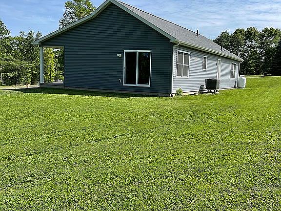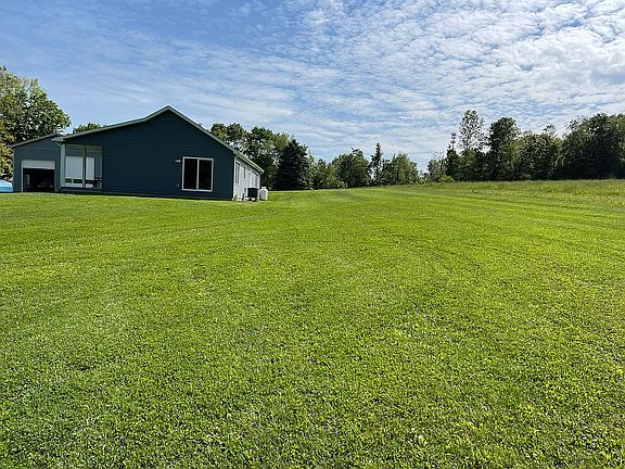 11 acres, 2 bedroom ranch with bathroom for each bedroom, Brazilian hardwood floors, Cathedral knotty pine tongue and groove ceiling, GE kitchen appliances, speed queen washer and dryer, full basement with 9 foot walls, heat pump with central air, 8‘ x 54‘ front porch. Garage is 32’x 52’ fully insulated and finished inside plumbed with a sink and toilet, full RV hook up 50 amp service, Wi-Fi, LED lighting and ceiling fans, 16 foot ceilings, 12’x12’, 14’x12’ and 8’x9’ doors. Heated with 125,000 btu propane furnace.