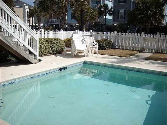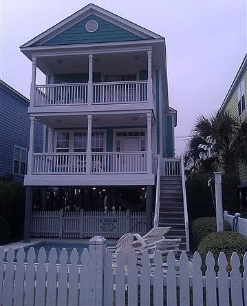 BEAUTIFUL RAISED BEACH-STYLE HOME JUST STEPS TO THE BEACH ACROSS THE STREET! YOU CAN SEE THE OCEAN FROM THE LARGE UP AND DOWNSTAIRS PORCHES AND FRONT WINDOWS. OUT BACK FEATURES A PRIVATE POOL. AMPLE UNDER HOUSE PARKING. BRIGHT, SUNNY HOME WITH GORGEOUS BEACH COLORS AND FURNISHINGS. ALL APPLIANCES- INCLUDING WASHER AND DRYER! EXCELLENT RENTAL POTENTIAL, ACCOMMODATES 14- 4BEDS, 4BATHS, PLUS SLEEPER SOFA. CLOSE TO PIER, RESTAURANTS AND ACTIVITIES. GREAT RENTAL POTENTIAL.