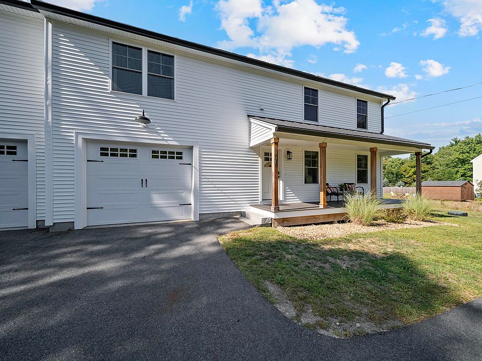 This 3 BR, 2.5 BA, 1-car garage condex, built in 2022, offers modern style and convenience and an unique opportunity to purchase with 17a (listed separately) and use for investment, dual or multi-generational living - or occupy one side and rent the other or to live next door to a family member or a friend. Features include hardwood and LVT plank flooring, white wood cabinetry, granite countertops, upgraded millwork, and welcoming farmer’s porches. The first floor features a spacious open-concept living area, dining area, spacious kitchen, and guest bath. Upstairs, the primary suite offers a large walk-in closet and private bath with double sinks. Two additional bedrooms, a full bath, and separate laundry complete the second floor. The unfinished lower level offers plenty of storage. Enjoy the patio and peaceful backyard situated on a shared 1.81 acre lot, the property offers the feel of single-family living with low-maintenance benefits. Located on Route 111, this home provides quick access to shopping, dining, schools, and commuting routes, all while being just minutes from Kingston’s charming town center and nearby parks. Only 45 miles to Boston, 30 miles to Manchester-Boston Regional Airport and 18 miles to Seacoast. Purchase one side for $750k or both for $1.4M - see MLS#5060043. OPEN HOUSES- Sat. & Sun., Sept. 13 & 14th (10-12).