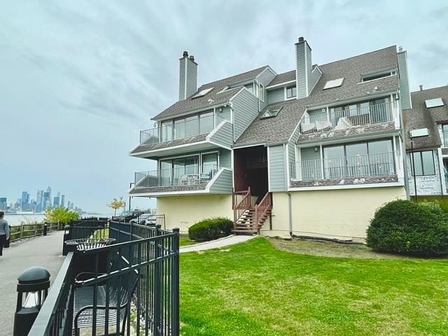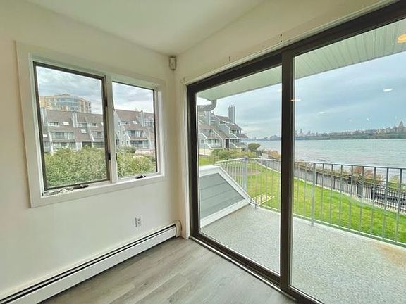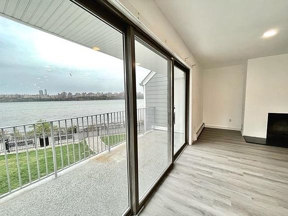 This amazing 2BR, 2Bath end unit condo is situated in the Roc Harbor gated community right on the edge of the Hudson River. This gem is approx. 1617 sqft per tax records and offers waterfront lifestyle living and walkway access in front. It feels like you are right on the water and get-away with an amazing unobstructed Northeast, Hudson River, NYC skyline and botanical garden view from the living room, dining room and kitchen. The unit features XL living rm with a FPL, terrace, a generously sized master BR with a walk-in closet & master bath.W/D in the unit.Self-vacuum system. New flooring, 2-car garage, plenty of parking space, new siding, security gate, pets are welcome. A Commuter's Delight; NJ Transit bus, ferry, GWB, Lincoln Tunnel, and Light Rail to NYC.Enjoy all the neighborhood amenities like shops,restaurants,cafes,markets,and parks.Low new Taxes $7200. Roc Harbor residents can use the outdoor pool at the Water Park on Hudson and Half Moon Harbor with a fee and agreement.