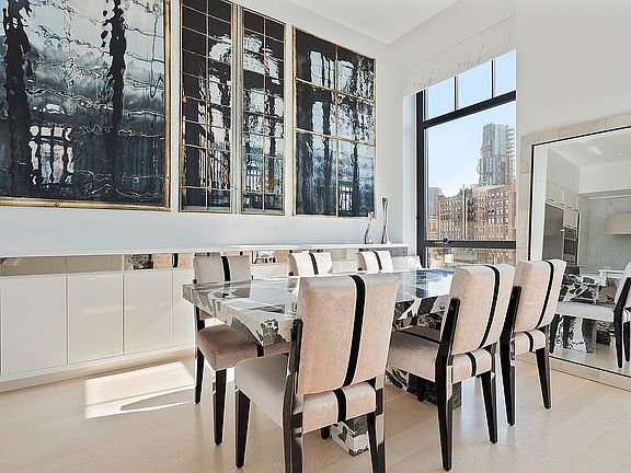 Parkside Perfection. This exquisite, fully customized 3 bedroom, 3.5 bathroom designer apartment is an exceptional home, standing out above the rest, without a single detail being overlooked. Perched high above the park on the 17th floor, the high floor E line is the most sought after layout at 10 Madison Square West. Every single room has direct unobstructed, open views of Madison Square Park with the city as its backdrop. Upon entering the dramatic grand foyer, you are welcomed to 13ft soaring loft ceiling heights, which is one of the many luxuries which stand out specifically on the higher floors. As you continue through to the living room, you will notice expansive oversized floor to ceiling windows, which radiate light and undeniable views of the historic Madison Square Park. The perfect winged floor plan showcases a sprawling open chef's kitchen, with classic white SieMatic cabinetry and Bianco Carrera marble with next generation appliances by Sub-Zero, Wolf, and Miele. The tremendous, master suite showcases thrilling direct park and city views with 2 custom walk-in closets, a spa inspired 5 fixture bath detailed with carrera marble featuring a custom double vanity, soaking tub, heated floors, and separate stall shower. The 2 additional bedrooms are all views over Madison Square Park, each with their own fabulous appointed en-suite baths. 10 Madison Square West offers the ultimate in premier living. Residents enjoy an exclusive 10,000 square foot club including a 60-foot heated lap pool with adjacent hot tub, yoga studio, Pilates studio, steam room, sauna, high energy studio, spa treatment room, and an outstanding gym designed by The Wright Fit. In addition, there is a children's playroom, outdoor courtyard, bike storage, full time doorman, concierge, porter, and live-in Resident Manager. With the highest quality materials and sophisticated design, this designer apartment can come furnished, partially furnished or unfurnished. The majority of the furniture is custom and one of a kind for the space. One of the most unique offerings in the city. Pets and smoking are not permitted.