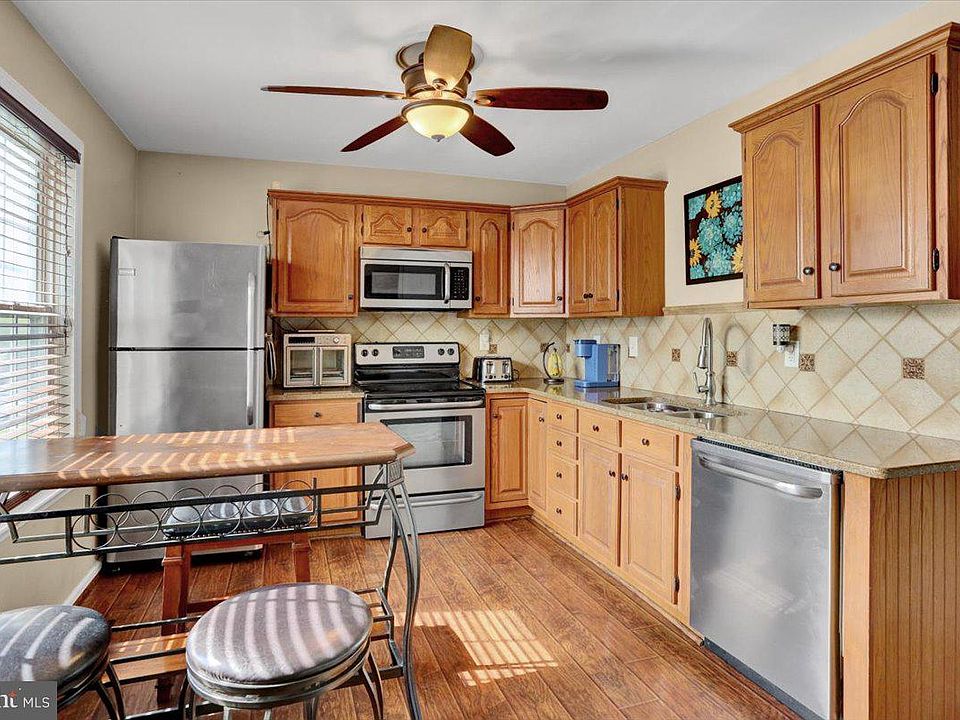 This beautiful end town home has three bedrooms and 2.5 bathrooms. Very nicely finished inside with an upgraded kitchen. Includes Granite tops, tile backsplash, SS appliances and upgraded engineered flooring throughout. The kitchen gives way to a separate dining area and oversized living room complete with gas fireplace. Evenings and weekends can be spent relaxing on the rear balcony wood deck. The second floor has two full bathrooms with the master having its own bathroom. Plenty of storage in the full basement where the laundry is located. forget shoveling or maintaining your lawn since all this is included in the HOA fees. There is also a community pool and clubhouse for use. Check with HOA for details.