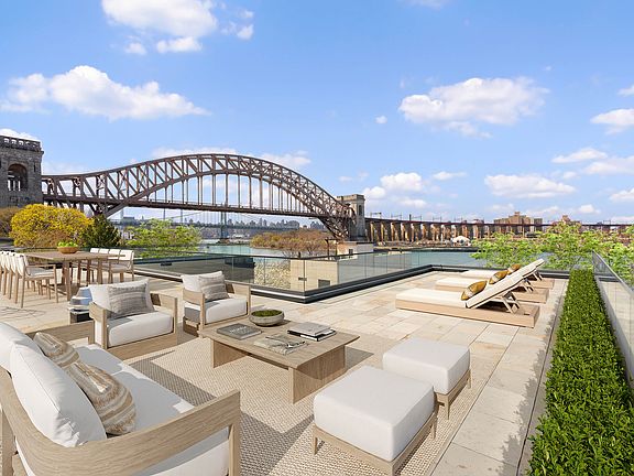 Rooftop deck with sweeping views of the Manhattan skyline, RFK Bridge, and Hell Gate Bridge