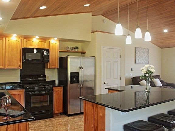 An array of opportunity is knocking in this lovely, custom-built home with approved, Commercial CV-10 Zoning! Live, work and play in the comforts of your own space where commuting can be simply going downstairs. Upstairs, you'll find the gorgeous living area with a smart, open floor plan, featuring bamboo finished, vaulted ceilings, porcelain tile in the kitchen & dining areas and elegant lighting. The kitchen boasts granite counters, large center island w/bar stool seating, plenty of cabinet space, pantry closet and propane connection. You will also enjoy the corner dining table with bench storage seating.The roomy, master bedroom is down the hall to the left, offering two large windows, double-wide closet with slider doors, en-suite master bath w/dual vanity sink, and tiled shower surround up to ceiling.Downstairs, is an amazing amount of space ready for your BUSINESS VENTURE, hobbies or storage for all your outdoor adventure gear. Two, 2-car garages greet you, both with additional storage rooms in rear. The back left features a large indoor utility room, 3rd bath with shower stall, toilet & utility sink, storage beneath the stairs, and an additional room to the right of the laundry. It keeps going! There are two more storage rooms, 8 x 20' and 8 x 30', complete w/shelves & locking doors. One can take advantage of the space and CV-10 zoning, originally obtained for an auto shop, but also has potential for other business uses. Buyers must inquire directly with/Planning Dept. to verify use for their specific needs. Residential use only is OK.Additional amenities include:- 4 ceiling fans.- Baseboards in garages!- On-demand, propane hot water heater.- 3 TV wall mounts.- Closet lights.- Carpeting in living, hall & bedrooms.- Large yard, 3/4 fenced w/chain link & rock walls.- Heavy-duty, chain link roller gate.- County water & Cable!- Prime Hwy 11 location. Great for business options.