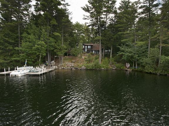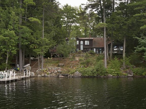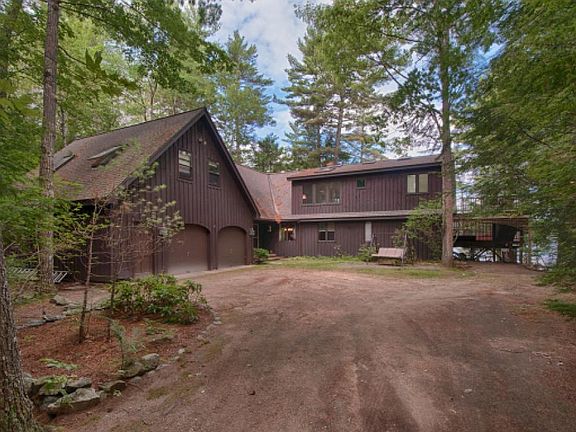 Spacious home on a beautifully private Winnipesaukee waterfront lot with spectacular views of Red Hill and the Sandwich Mountain Range. Open floor plan with updated Cherry kitchen, granite Island and stainless steel appliances, hardwood floors, brick/wood burning fireplace with bluestone hearth, a great year round sunroom/porch with tons of glass that make you feel like you are sitting outside. 2 gas stoves, to keep things toasty warm in the winter, large concrete patio, and multiple decks and balconies, one with a built-in hot tub. An unbeatable master suite, private from the rest of the house, with a great bath, a den and little kitchenette; plus decks and easy access to the outdoor hot tub. The house has lots of sleeping space for a crowd & lots of places to be on your own. The waterfront with 165' is quite private & has a U-shaped dock, w/deep water, a canoe dock, swim raft & beautiful sandy bottom swimming all on a quiet cove in a WF neighborhood. $1150. yr. fees water & road.