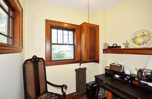Driving up this quiet dead-end street, smelling fall in the air, you think how nice it would be to have a fireplace. As you enter this cozy bungalow, you are pleased to see not just a wood-burning fireplace, but beautiful wood work and charming windows. The center entrance creates the perfect circular flow for entertaining. A comfortable dining room sets the mood for holiday gatherings with family and friends. A spacious kitchen has great counter space, and invites your finishing touches. If you want tranquility, the screened porch overlooks a sizeable yard and garden with beautiful irises in May. A half bath and efficient office space complete the first floor. Upstairs boasts 2 good-sized bedrooms, a spacious full bath, and lots of closet/storage space. The full basement offers plenty of room for someone who wants a place for a workbench. With so many wonderful features, this is a home not to be missed. Location close to Mass. Ave. makes shopping and transportation a breeze.