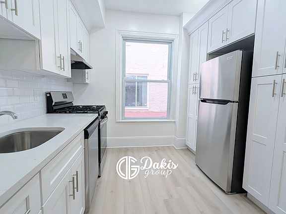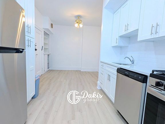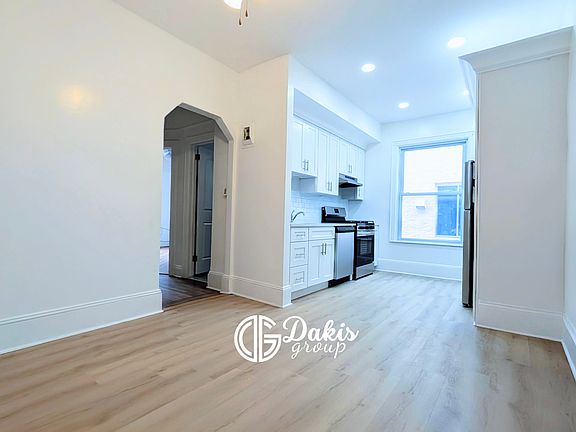 Completely gut renovated 1 bedroom apartment with a spacious kitchen with new floors, new cabinets, new counter tops, appliances including a dishwasher and space for a dining table!