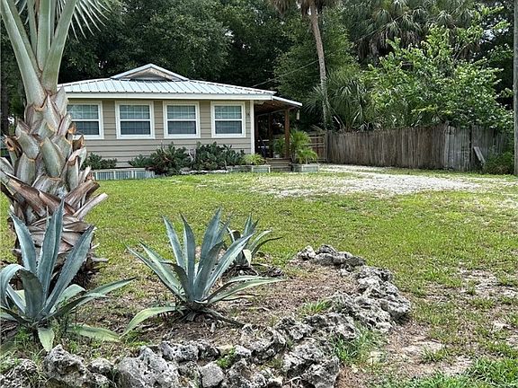 Nestled in the heart of old Florida charm, this cozy 1975 cracker-style home offers the perfect blend of character, simplicity, and natural beauty. Located just a short distance from the peaceful shores of Bird Creek Beach. Step inside to discover a welcoming Florida-style entry room that leads into a warm, thoughtfully designed 2 bedroom/1 bathroom living space. The home features live edge wood shelving, adding a touch of rustic craftsmanship and unique flair. The Washer and Dryer (2024) as well as the oven and refrigerator (2023) convey with home. A new roof (2022) ensures peace of mind for years to come. The home also has updated Hardie Board Siding (2017), Windows (2017), and Fencing (2018). Although located in close proximity to the water, this home has NEVER FLOODED and just two blocks away is a community use boat launch. Enjoy your morning coffee or evening breeze on the covered front porch, surrounded by native landscaping and clusters of Opuntia cacti that give the yard a distinct, low-maintenance Florida vibe. Out back, a large shed installed in 2022 provides ample space for tools, storage, or creative projects. Whether you're looking for a weekend getaway, a cozy year-round residence, or a vacation rental investment, this home captures the spirit of Yankeetown living—laid-back, nature-filled, and full of potential.