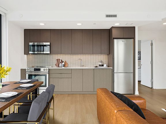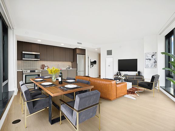 Our apartments can be experienced virtually with a 3D walkthrough or with a video call with one of our agents. APARTMENT DESCRIPTION: Corner 2BR home with 2 full baths and North West exposure capturing views of the Empire State Building and gorgeous sunsets. Plenty of storage including a walk-in closet as well as in-home washer / dryer. *Photo may not be of actual unit but are representative of interior finishes. BUILDING DESCRIPTION: Designed by Perkins Eastman, with amenities designed by Lemay + Escobar, Brooklyn Crossing offers 51 stories of custom-appointed residences and amenities to create the next chapter in your life story. Studio and 1- to 3-bedroom apartments, with resident amenities designed for being still or being in the center of the action, whenever you choose. Here, space abounds to stretch solo or spin with friends in the expansive fitness center, make it a movie night in the resident Screening Room, or people-watch on the open-air rooftop complete with a Sky Lounge, outdoor pool, and 360-degree views stretching from the Manhattan skyline to Rockaway Beach. Situated in prime Prospect Heights, you're minutes from epic culture and culinary fare in every direction, including historic landmarks like the Brooklyn Academy of Music and dynamic new destinations like Barclays Center. Add to that 10 train lines one block away, and really, you can go anywhere you want from here.