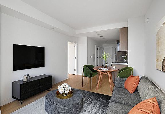 Our apartments can be experienced virtually with a 3D walkthrough or with a video call with one of our agents. APARTMENT DESCRIPTION: Bright 1BR home with South East exposure due to corner, floor to ceiling windows in the bedroom; which also includes a walk-in closet and in home washer / dryer. *Photos may not be of actual apartment but are representative of interior finishes. BUILDING DESCRIPTION: Designed by Perkins Eastman, with amenities designed by Lemay + Escobar, Brooklyn Crossing offers 51 stories of custom-appointed residences and amenities to create the next chapter in your life story. Studio and 1- to 3-bedroom apartments, with resident amenities designed for being still or being in the center of the action, whenever you choose. Here, space abounds to stretch solo or spin with friends in the expansive fitness center, make it a movie night in the resident Screening Room, or people-watch on the open-air rooftop complete with a Sky Lounge, outdoor pool, and 360-degree views stretching from the Manhattan skyline to Rockaway Beach. Situated in prime Prospect Heights, you're minutes from epic culture and culinary fare in every direction, including historic landmarks like the Brooklyn Academy of Music and dynamic new destinations like Barclays Center. Add to that 10 train lines one block away, and really, you can go anywhere you want from here.