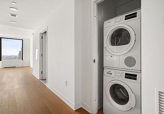 Our apartments can be experienced virtually with a 3D walkthrough or with a video call with one of our agents. APARTMENT DESCRIPTION: Eastern facing 1BR home capturing the morning sunrise, with walk-in closet and in home washer / dryer. *Photo may not be of actual unit but are representative of interior finishes. BUILDING DESCRIPTION: Designed by Perkins Eastman, with amenities designed by Lemay + Escobar, Brooklyn Crossing offers 51 stories of custom-appointed residences and amenities to create the next chapter in your life story. Studio and 1- to 3-bedroom apartments, with resident amenities designed for being still or being in the center of the action, whenever you choose. Here, space abounds to stretch solo or spin with friends in the expansive fitness center, make it a movie night in the resident Screening Room, or people-watch on the open-air rooftop complete with a Sky Lounge, outdoor pool, and 360-degree views stretching from the Manhattan skyline to Rockaway Beach. Situated in prime Prospect Heights, you're minutes from epic culture and culinary fare in every direction, including historic landmarks like the Brooklyn Academy of Music and dynamic new destinations like Barclays Center. Add to that 10 train lines one block away, and really, you can go anywhere you want from here.