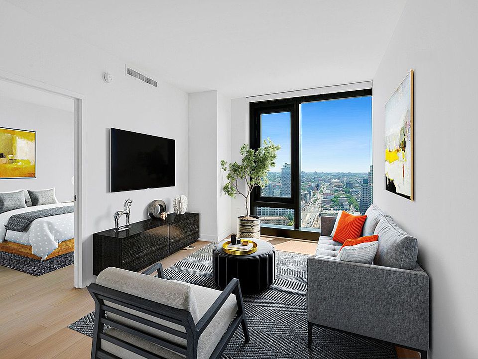 Our apartments can be experienced virtually with a 3D walkthrough or with a video call with one of our agents. APARTMENT DESCRIPTION: Bright 1BR home with unobstructed Eastern views capturing the morning sunrise through floor to ceiling windows, generous storage and in home washer / dryer. BUILDING DESCRIPTION: Designed by Perkins Eastman, with amenities designed by Lemay + Escobar, Brooklyn Crossing offers 51 stories of custom-appointed residences and amenities to create the next chapter in your life story. Studio and 1- to 3-bedroom apartments, with resident amenities designed for being still or being in the center of the action, whenever you choose. Here, space abounds to stretch solo or spin with friends in the expansive fitness center, make it a movie night in the resident Screening Room, or people-watch on the open-air rooftop complete with a Sky Lounge, outdoor pool, and 360-degree views stretching from the Manhattan skyline to Rockaway Beach. Situated in prime Prospect Heights, you're minutes from epic culture and culinary fare in every direction, including historic landmarks like the Brooklyn Academy of Music and dynamic new destinations like Barclays Center. Add to that 10 train lines one block away, and really, you can go anywhere you want from here. Smoking allowed:No