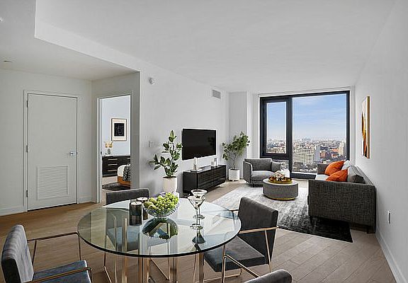 Our apartments can be experienced virtually with a 3D walkthrough or with a video call with one of our agents. APARTMENT DESCRIPTION: Large 2BR home showcasing breathtaking sunsets and views of the Statue of Liberty from the floor to ceiling windows; with 2 full bathrooms, generous storage, and in home washer / dryer. *Photo may not be of actual unit but are representative of interior finishes. BUILDING DESCRIPTION: Designed by Perkins Eastman, with amenities designed by Lemay + Escobar, Brooklyn Crossing offers 51 stories of custom-appointed residences and amenities to create the next chapter in your life story. Studio and 1- to 3-bedroom apartments, with resident amenities designed for being still or being in the center of the action, whenever you choose. Here, space abounds to stretch solo or spin with friends in the expansive fitness center, make it a movie night in the resident Screening Room, or people-watch on the open-air rooftop complete with a Sky Lounge, outdoor pool, and 360-degree views stretching from the Manhattan skyline to Rockaway Beach. Situated in prime Prospect Heights, you're minutes from epic culture and culinary fare in every direction, including historic landmarks like the Brooklyn Academy of Music and dynamic new destinations like Barclays Center. Add to that 10 train lines one block away, and really, you can go anywhere you want from here.