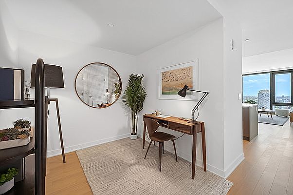 Our apartments can be experienced virtually with a 3D walkthrough or with a video call with one of our agents. APARTMENT DESCRIPTION: 1BR home includes a Home Office Alcove, unobstructed Eastern views to capture the morning sunrise, 2 walk-in closets and in home washer / dryer. *Photos may not be of actual apartment but are representative of interior finishes. BUILDING DESCRIPTION: Designed by Perkins Eastman, with amenities designed by Lemay + Escobar, Brooklyn Crossing offers 51 stories of custom-appointed residences and amenities to create the next chapter in your life story. Studio and 1- to 3-bedroom apartments, with resident amenities designed for being still or being in the center of the action, whenever you choose. Here, space abounds to stretch solo or spin with friends in the expansive fitness center, make it a movie night in the resident Screening Room, or people-watch on the open-air rooftop complete with a Sky Lounge, outdoor pool, and 360-degree views stretching from the Manhattan skyline to Rockaway Beach. Situated in prime Prospect Heights, you're minutes from epic culture and culinary fare in every direction, including historic landmarks like the Brooklyn Academy of Music and dynamic new destinations like Barclays Center. Add to that 10 train lines one block away, and really, you can go anywhere you want from here.