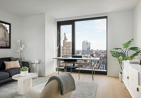 Our apartments can be experienced virtually with a 3D walkthrough or with a video call with one of our agents. APARTMENT DESCRIPTION: Studio home with generous closet space, in home washer/dryer and floor to ceiling windows. *Photo may not be of actual unit but are representative of interior finishes. BUILDING DESCRIPTION: Designed by Perkins Eastman, with amenities designed by Lemay + Escobar, Brooklyn Crossing offers 51 stories of custom-appointed residences and amenities to create the next chapter in your life story. Studio and 1- to 3-bedroom apartments, with resident amenities designed for being still or being in the center of the action, whenever you choose. Here, space abounds to stretch solo or spin with friends in the expansive fitness center, make it a movie night in the resident Screening Room, or people-watch on the open-air rooftop complete with a Sky Lounge, outdoor pool, and 360-degree views stretching from the Manhattan skyline to Rockaway Beach. Situated in prime Prospect Heights, you're minutes from epic culture and culinary fare in every direction, including historic landmarks like the Brooklyn Academy of Music and dynamic new destinations like Barclays Center. Add to that 10 train lines one block away, and really, you can go anywhere you want from here.