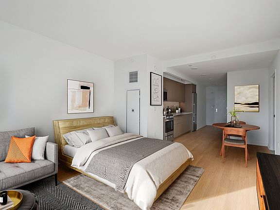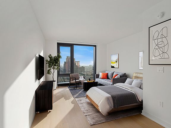 Our apartments can be experienced virtually with a 3D walkthrough or with a video call with one of our agents. APARTMENT DESCRIPTION: Bright East facing studio with generous storage, in home washer/dryer and floor to ceiling windows. *Photo may not be of actual unit but are representative of interior finishes Application Fee: $20 per leaseholder and guarantor. Security Deposit: Equal to 1-months rent unless stated otherwise in the lease. Credit & Debit Cards Fees (for BILT): Credit Cards 3% and debit $9.95 per transaction. Credit & Debit Cards Fees (for ClickPay): Credit Cards 2.95% ($15 for VISA) and debit $9.95 per transaction (foreign transaction fee: additional 1.00% fee applies when using an international credit card). Utilities: Cable, internet, telephone, and electricity costs: Based on usage. Additional Security Deposit & Rent Increase: As required per the lease and allowed under applicable law. Renters Insurance: Required policy (you may obtain through your preferred provider). The Guarantors or Rhino: Optional, if you use these services, their applicable fees will apply.Late Fees: 5% or $50 per instance, whichever is less. Non-Sufficient Funds Fee: $50 per instance. Key Replacement Fee:$20Key Fob Replacement: $20Key Cylinder/Lock Replacement: $150 Damage Fees: Billed at cost for damages beyond normal wear and tear. Legal Fees: Billed at cost, as permitted by law. Cable/Internet/Phone: Optional - supplied by independent providers. For electricity there are 3 possibilities depending on the property: 1) No fee, 2) Electricity charge from independent provider, based on usage, 3) Electricity charge from landlord, based on usage. Lounge/Party Room Event Fees: As billed by the hour, optional - if availableBicycle Storage Fee: Optional $25 per month, per bike. NOTICE: This is a no fee apartment available for rent directly to the public. Owner will not charge or collect or pay any brokers fees. Owner does not authorize any broker to relist this apartment for rent. Brokers must present a prior agreement between the broker and any prospective tenant in which the tenant has hired the broker and agreed to pay the brokers fee. Without such agreement, broker will not be permitted to show the apartment. BUILDING DESCRIPTION: Designed by Perkins Eastman, with amenities designed by Lemay + Escobar, Brooklyn Crossing offers 51 stories of custom-appointed residences and amenities to create the next chapter in your life story. Studio and 1- to 3-bedroom apartments, with resident amenities designed for being still or being in the center of the action, whenever you choose. Here, space abounds to stretch solo or spin with friends in the expansive fitness center, make it a movie night in the resident Screening Room, or people-watch on the open-air rooftop complete with a Sky Lounge, outdoor pool, and 360-degree views stretching from the Manhattan skyline to Rockaway Beach. Situated in prime Prospect Heights, youre minutes from epic culture and culinary fare in every direction, including historic landmarks like the Brooklyn Academy of Music and dynamic new destinations like Barclays Center. Add to that 10 train lines one block away, and really, you can go anywhere you want from here. There is an optional amenity fee of $95 per person, per month.