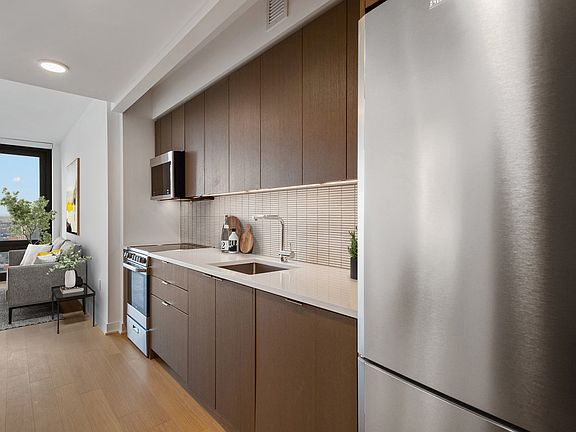 Our apartments can be experienced virtually with a 3D walkthrough or with a video call with one of our agents. APARTMENT DESCRIPTION: Unique alcove design studio with floor to ceiling windows encompassing Western views of the Statue of Liberty. Generous closet space, plus in home washer/dryer. APPLICATION FEE: $20 per leaseholder and guarantor. SECURITY DEPOSIT: Equal to 1-months rent unless stated otherwise in the lease. CREDIT & DEBIT CARD FEES (for BILT): Credit Cards 3% and debit $9.95 per transaction. CREDIT & DEBIT CARD FEES (for ClickPay): Credit Cards 2.95% ($15 for VISA) and debit $9.95 per transaction (foreign transaction fee: additional 1.00% fee applies when using an international credit card). UTILITIES: Cable, internet, telephone, and electricity costs: Based on usage. ADDITIONAL SECURITY DEPOSIT & RENT INCREASE: As required per the lease and allowed under applicable law. RENTERS' INSURANCE: Required policy (you may obtain through your preferred provider). THE GUARANTORS OR RHINO: Optional, if you use these services, their applicable fees will apply. LATE FEES: 5% or $50 per instance, whichever is less. NON-SUFFICIENT FUNDS FEE: $50 per instance. KEY REPLACEMENT FEE: $20 KEY FOB REPLACEMENT FEE: $20 KEY CYLINDER / LOCK REPLACEMENT FEE: $150 DAMAGE FEES: Billed at cost for damages beyond normal wear and tear. LEGAL FEES: Billed at cost, as permitted by law. CABLE / INTERNET / PHONE: Optional - supplied by independent providers. For electricity there are 3 possibilities depending on the property: 1) No fee, 2) Electricity charge from independent provider, based on usage, 3) Electricity charge from landlord, based on usage. LOUNGE / PARTY ROOM EVENT FEES: As billed by the hour, optional - if available BICYCLE STORAGE FEE: Optional $25 per month, per bike. NOTICE: This is a no fee apartment available for rent directly to the public. Owner will not charge or collect or pay any brokers fees. Owner does not authorize any broker to relist this apartment for rent. Brokers must present a prior agreement between the broker and any prospective tenant in which the tenant has hired the broker and agreed to pay the brokers fee. Without such agreement, broker will not be permitted to show the apartment. BUILDING DESCRIPTION: Designed by Perkins Eastman, with amenities designed by Lemay + Escobar, Brooklyn Crossing offers 51 stories of custom-appointed residences and amenities to create the next chapter in your life story. Studio and 1- to 3-bedroom apartments, with resident amenities designed for being still or being in the center of the action, whenever you choose. Here, space abounds to stretch solo or spin with friends in the expansive fitness center, make it a movie night in the resident Screening Room, or people-watch on the open-air rooftop complete with a Sky Lounge, outdoor pool, and 360-degree views stretching from the Manhattan skyline to Rockaway Beach. Situated in prime Prospect Heights, youre minutes from epic culture and culinary fare in every direction, including historic landmarks like the Brooklyn Academy of Music and dynamic new destinations like Barclays Center. Add to that 10 train lines one block away, and really, you can go anywhere you want from here. There is an optional amenity fee of $95 per person, per month.