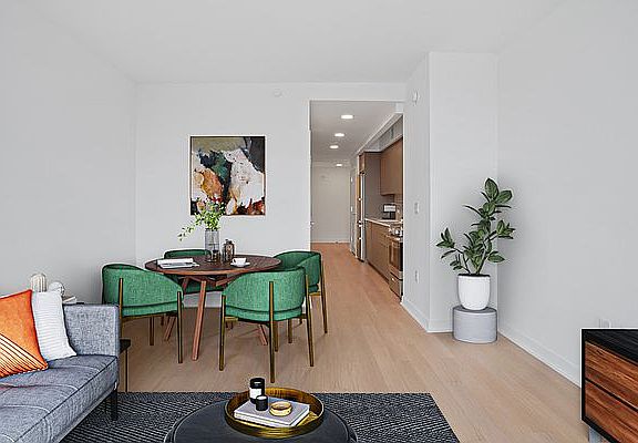 Our apartments can be experienced virtually with a 3D walkthrough or with a video call with one of our agents. APARTMENT DESCRIPTION: Alcove studio with Northern exposure; featuring breath taking views of the Manhattan Skyline, a walk-in closet and in home washer / dryer. *Photo may not be of actual unit but are representative of interior finishes. BUILDING DESCRIPTION: Designed by Perkins Eastman, with amenities designed by Lemay + Escobar, Brooklyn Crossing offers 51 stories of custom-appointed residences and amenities to create the next chapter in your life story. Studio and 1- to 3-bedroom apartments, with resident amenities designed for being still or being in the center of the action, whenever you choose. Here, space abounds to stretch solo or spin with friends in the expansive fitness center, make it a movie night in the resident Screening Room, or people-watch on the open-air rooftop complete with a Sky Lounge, outdoor pool, and 360-degree views stretching from the Manhattan skyline to Rockaway Beach. Situated in prime Prospect Heights, you're minutes from epic culture and culinary fare in every direction, including historic landmarks like the Brooklyn Academy of Music and dynamic new destinations like Barclays Center. Add to that 10 train lines one block away, and really, you can go anywhere you want from here.