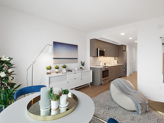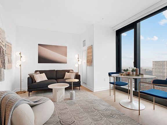 Our apartments can be experienced virtually with a 3D walkthrough or with a video call with one of our agents. APARTMENT DESCRIPTION: Spacious, bright Alcove studio with unobstructed Eastern exposure from the floor-to-ceiling windows, capturing morning sunrise. Generous closet space and an in-home washer/dryer. *Photos may not be of actual apartment but are representative of interior finishes. BUILDING DESCRIPTION: Designed by Perkins Eastman, with amenities designed by Lemay + Escobar, Brooklyn Crossing offers 51 stories of custom-appointed residences and amenities to create the next chapter in your life story. Studio and 1- to 3-bedroom apartments, with resident amenities designed for being still or being in the center of the action, whenever you choose. Here, space abounds to stretch solo or spin with friends in the expansive fitness center, make it a movie night in the resident Screening Room, or people-watch on the open-air rooftop complete with a Sky Lounge, outdoor pool, and 360-degree views stretching from the Manhattan skyline to Rockaway Beach. Situated in prime Prospect Heights, you're minutes from epic culture and culinary fare in every direction, including historic landmarks like the Brooklyn Academy of Music and dynamic new destinations like Barclays Center. Add to that 10 train lines one block away, and really, you can go anywhere you want from here.