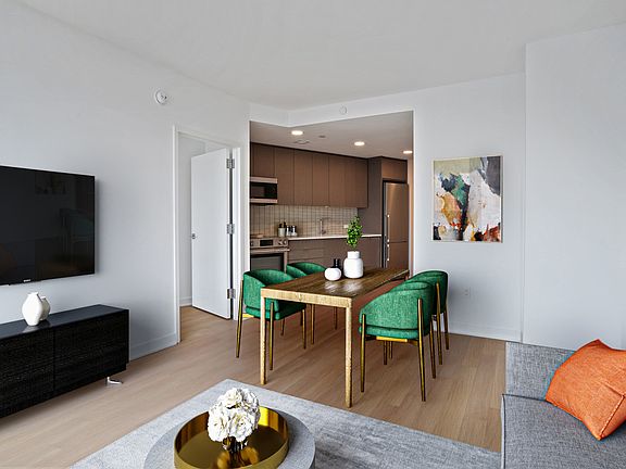 Our apartments can be experienced virtually with a 3D walkthrough or with a video call with one of our agents. APARTMENT DESCRIPTION: West-facing 1BR home with Statue of Liberty and harbor views from the floor to ceiling windows; with in home washer / dryer and generous storage space. *Photos may not be of actual apartment but are representative of interior finishes. BUILDING DESCRIPTION: Designed by Perkins Eastman, with amenities designed by Lemay + Escobar, Brooklyn Crossing offers 51 stories of custom-appointed residences and amenities to create the next chapter in your life story. Studio and 1- to 3-bedroom apartments, with resident amenities designed for being still or being in the center of the action, whenever you choose. Here, space abounds to stretch solo or spin with friends in the expansive fitness center, make it a movie night in the resident Screening Room, or people-watch on the open-air rooftop complete with a Sky Lounge, outdoor pool, and 360-degree views stretching from the Manhattan skyline to Rockaway Beach. Situated in prime Prospect Heights, you're minutes from epic culture and culinary fare in every direction, including historic landmarks like the Brooklyn Academy of Music and dynamic new destinations like Barclays Center. Add to that 10 train lines one block away, and really, you can go anywhere you want from here.