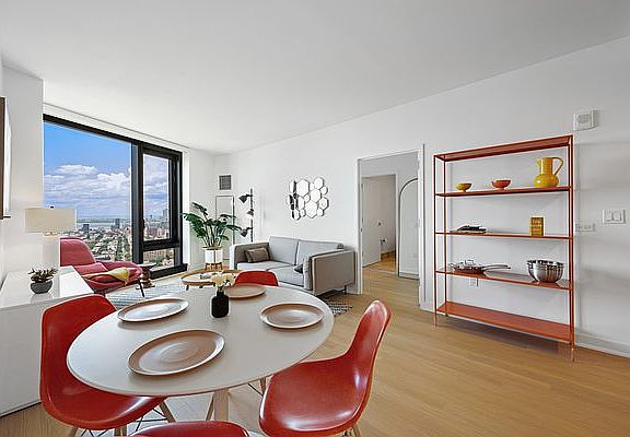 Our apartments can be experienced virtually with a 3D walkthrough or with a video call with one of our agents. APARTMENT DESCRIPTION: 2BR home showcasing breathtaking sunsets and views of the Statue of Liberty from the floor to ceiling windows; with 2 full bathrooms, generous storage, and in home washer / dryer. BUILDING DESCRIPTION: Designed by Perkins Eastman, with amenities designed by Lemay + Escobar, Brooklyn Crossing offers 51 stories of custom-appointed residences and amenities to create the next chapter in your life story. Studio and 1- to 3-bedroom apartments, with resident amenities designed for being still or being in the center of the action, whenever you choose. Here, space abounds to stretch solo or spin with friends in the expansive fitness center, make it a movie night in the resident Screening Room, or people-watch on the open-air rooftop complete with a Sky Lounge, outdoor pool, and 360-degree views stretching from the Manhattan skyline to Rockaway Beach. Situated in prime Prospect Heights, you're minutes from epic culture and culinary fare in every direction, including historic landmarks like the Brooklyn Academy of Music and dynamic new destinations like Barclays Center. Add to that 10 train lines one block away, and really, you can go anywhere you want from here. Smoking allowed:No