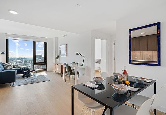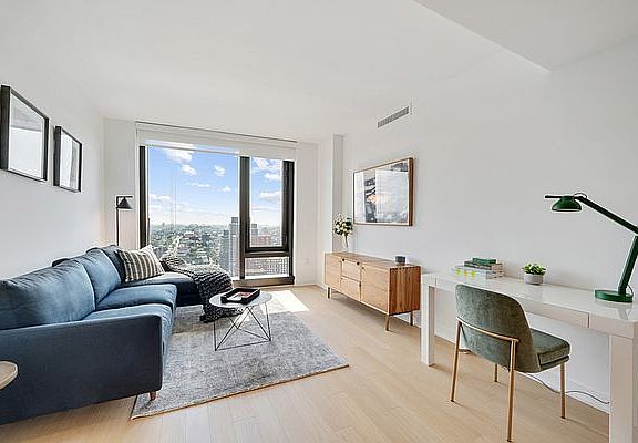 Our apartments can be experienced virtually with a 3D walkthrough or with a video call with one of our agents. APARTMENT DESCRIPTION: Spacious 1BR home with unobstructed Eastern views, floor to ceiling windows and a dining nook which can also be used as a work from home / desk area. *Photos may not be of actual apartment but are representative of interior finishes. BUILDING DESCRIPTION: Designed by Perkins Eastman, with amenities designed by Lemay + Escobar, Brooklyn Crossing offers 51 stories of custom-appointed residences and amenities to create the next chapter in your life story. Studio and 1- to 3-bedroom apartments, with resident amenities designed for being still or being in the center of the action, whenever you choose. Here, space abounds to stretch solo or spin with friends in the expansive fitness center, make it a movie night in the resident Screening Room, or people-watch on the open-air rooftop complete with a Sky Lounge, outdoor pool, and 360-degree views stretching from the Manhattan skyline to Rockaway Beach. Situated in prime Prospect Heights, you're minutes from epic culture and culinary fare in every direction, including historic landmarks like the Brooklyn Academy of Music and dynamic new destinations like Barclays Center. Add to that 10 train lines one block away, and really, you can go anywhere you want from here.