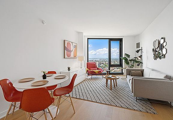 Our apartments can be experienced virtually with a 3D walkthrough or with a video call with one of our agents. APARTMENT DESCRIPTION: 2BR home showcasing breathtaking sunsets and views of the Statue of Liberty from the floor to ceiling windows; with 2 full bathrooms, generous storage, and in home washer / dryer. *Photo may not be of actual unit but are representative of interior finishes. BUILDING DESCRIPTION: Designed by Perkins Eastman, with amenities designed by Lemay + Escobar, Brooklyn Crossing offers 51 stories of custom-appointed residences and amenities to create the next chapter in your life story. Studio and 1- to 3-bedroom apartments, with resident amenities designed for being still or being in the center of the action, whenever you choose. Here, space abounds to stretch solo or spin with friends in the expansive fitness center, make it a movie night in the resident Screening Room, or people-watch on the open-air rooftop complete with a Sky Lounge, outdoor pool, and 360-degree views stretching from the Manhattan skyline to Rockaway Beach. Situated in prime Prospect Heights, you're minutes from epic culture and culinary fare in every direction, including historic landmarks like the Brooklyn Academy of Music and dynamic new destinations like Barclays Center. Add to that 10 train lines one block away, and really, you can go anywhere you want from here.