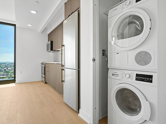 Our apartments can be experienced virtually with a 3D walkthrough or with a video call with one of our agents. APARTMENT DESCRIPTION: Bright South facing studio with in home washer/dryer and floor to ceiling windows. *Photo may not be of actual unit but are representative of interior finishes Application Fee: $20 per leaseholder and guarantor.Security Deposit: Equal to 1-months' rent unless stated otherwise in the lease. Credit & Debit Cards Fees (for BILT): Credit Cards 3% and debit $9.95 per transaction. Credit & Debit Cards Fees (for ClickPay): Credit Cards 2.95% ($15 for VISA) and debit $9.95 per transaction (foreign transaction fee: additional 1.00% fee applies when using an international credit card).Utilities: Cable, internet, telephone, and electricity costs: Based on usage. Additional Security Deposit & Rent Increase: As required per the lease and allowed under applicable law.Renters' Insurance: Required policy (you may obtain through your preferred provider).The Guarantors or Rhino: Optional, if you use these services, their applicable fees will apply.Late Fees: 5% or $50 per instance, whichever is less. NSF Fee: $50 per instance.Key Replacement Fee: $20Key Fob Replacement:$20Key Cylinder/Lock Replacement: $150Damage Fees: Billed at cost for damages beyond normal wear and tear.Legal Fees: Billed at cost, as permitted by law.Cable/Internet/phone:Optional - supplied by independent providers. For electricity there are 3 possibilities depending on the property: 1) No fee, 2) Electricity charge from independent provider, based on usage, 3) Electricity charge from landlord, based on usage.Lounge/Party Room Event Fees: As billed by the hour, optional - if availableBicycle Storage Fee:Optional $25 per month, per bike. NOTICE: This is a no fee apartment available for rent directly to the public. Owner will not charge or collect or pay any brokers' fees. Owner does not authorize any broker to relist this apartment for rent. Brokers must present a prior agreement between the broker and any prospective tenant in which the tenant has hired the broker and agreed to pay the broker's fee. Without such agreement, broker will not be permitted to show the apartment. BUILDING DESCRIPTION: Designed by Perkins Eastman, with amenities designed by Lemay + Escobar, Brooklyn Crossing offers 51 stories of custom-appointed residences and amenities to create the next chapter in your life story. Studio and 1- to 3-bedroom apartments, with resident amenities designed for being still or being in the center of the action, whenever you choose. Here, space abounds to stretch solo or spin with friends in the expansive fitness center, make it a movie night in the resident Screening Room, or people-watch on the open-air rooftop complete with a Sky Lounge, outdoor pool, and 360-degree views stretching from the Manhattan skyline to Rockaway Beach. Situated in prime Prospect Heights, you're minutes from epic culture and culinary fare in every direction, including historic landmarks like the Brooklyn Academy of Music and dynamic new destinations like Barclays Center. Add to that 10 train lines one block away, and really, you can go anywhere you want from here. There is an optional amenity fee of $95 per person, per month.