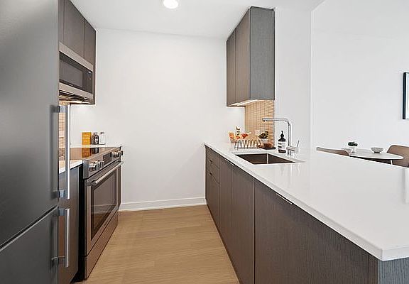 Our apartments can be experienced virtually with a 3D walkthrough or with a video call with one of our agents. APARTMENT DESCRIPTION: 1BR home includes a Home Office Alcove, unobstructed Eastern views to capture the morning sunrise, 2 walk-in closets and in home washer / dryer. *Photos may not be of actual apartment but are representative of interior finishes. BUILDING DESCRIPTION: Designed by Perkins Eastman, with amenities designed by Lemay + Escobar, Brooklyn Crossing offers 51 stories of custom-appointed residences and amenities to create the next chapter in your life story. Studio and 1- to 3-bedroom apartments, with resident amenities designed for being still or being in the center of the action, whenever you choose. Here, space abounds to stretch solo or spin with friends in the expansive fitness center, make it a movie night in the resident Screening Room, or people-watch on the open-air rooftop complete with a Sky Lounge, outdoor pool, and 360-degree views stretching from the Manhattan skyline to Rockaway Beach. Situated in prime Prospect Heights, you're minutes from epic culture and culinary fare in every direction, including historic landmarks like the Brooklyn Academy of Music and dynamic new destinations like Barclays Center. Add to that 10 train lines one block away, and really, you can go anywhere you want from here.