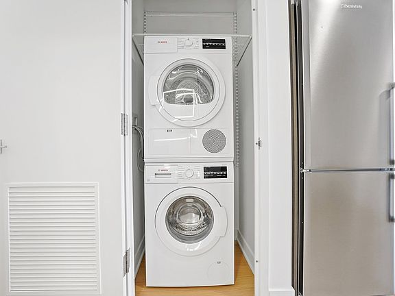 Our apartments can be experienced virtually with a 3D walkthrough or with a video call with one of our agents. APARTMENT DESCRIPTION: North facing 1BR home with Iconic views on the Manhattan Skyline and East River; featuring an in home washer / dryer. *Photo may not be of actual unit but are representative of interior finishes. APPLICATION FEE: $20 per leaseholder and guarantor. SECURITY DEPOSIT: Equal to 1-months rent unless stated otherwise in the lease. CREDIT & DEBIT CARD FEES (for BILT): Credit Cards 3% and debit $9.95 per transaction. CREDIT & DEBIT CARD FEES (for ClickPay): Credit Cards 2.95% ($15 for VISA) and debit $9.95 per transaction (foreign transaction fee: additional 1.00% fee applies when using an international credit card). UTILITIES: Cable, internet, telephone, and electricity costs: Based on usage. ADDITIONAL SECURITY DEPOSIT & RENT INCREASE: As required per the lease and allowed under applicable law. RENTERS' INSURANCE: Required policy (you may obtain through your preferred provider). THE GUARANTORS OR RHINO: Optional, if you use these services, their applicable fees will apply. LATE FEES: 5% or $50 per instance, whichever is less. NON-SUFFICIENT FUNDS FEE: $50 per instance. KEY REPLACEMENT FEE: $20 KEY FOB REPLACEMENT FEE: $20 KEY CYLINDER / LOCK REPLACEMENT FEE: $150 DAMAGE FEES: Billed at cost for damages beyond normal wear and tear. LEGAL FEES: Billed at cost, as permitted by law. CABLE / INTERNET / PHONE: Optional - supplied by independent providers. For electricity there are 3 possibilities depending on the property: 1) No fee, 2) Electricity charge from independent provider, based on usage, 3) Electricity charge from landlord, based on usage. LOUNGE / PARTY ROOM EVENT FEES: As billed by the hour, optional - if available BICYCLE STORAGE FEE: Optional $25 per month, per bike. NOTICE: This is a no fee apartment available for rent directly to the public. Owner will not charge or collect or pay any brokers fees. Owner does not authorize any broker to relist this apartment for rent. Brokers must present a prior agreement between the broker and any prospective tenant in which the tenant has hired the broker and agreed to pay the brokers fee. Without such agreement, broker will not be permitted to show the apartment. BUILDING DESCRIPTION: Designed by Perkins Eastman, with amenities designed by Lemay + Escobar, Brooklyn Crossing offers 51 stories of custom-appointed residences and amenities to create the next chapter in your life story. Studio and 1- to 3-bedroom apartments, with resident amenities designed for being still or being in the center of the action, whenever you choose. Here, space abounds to stretch solo or spin with friends in the expansive fitness center, make it a movie night in the resident Screening Room, or people-watch on the open-air rooftop complete with a Sky Lounge, outdoor pool, and 360-degree views stretching from the Manhattan skyline to Rockaway Beach. Situated in prime Prospect Heights, youre minutes from epic culture and culinary fare in every direction, including historic landmarks like the Brooklyn Academy of Music and dynamic new destinations like Barclays Center. Add to that 10 train lines one block away, and really, you can go anywhere you want from here. There is an optional amenity fee of $95 per person, per month.