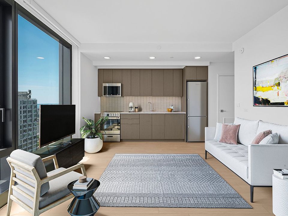 Our apartments can be experienced virtually with a 3D walkthrough or with a video call with one of our agents. APARTMENT DESCRIPTION: Bright Penthouse level South facing studio with in home washer/dryer and floor to ceiling windows. *Photo may not be of actual unit but are representative of interior finishes APPLICATION FEE: $20 per leaseholder and guarantor. SECURITY DEPOSIT: Equal to 1-months rent unless stated otherwise in the lease. CREDIT & DEBIT CARD FEES (for BILT): Credit Cards 3% and debit $9.95 per transaction. CREDIT & DEBIT CARD FEES (for ClickPay): Credit Cards 2.95% ($15 for VISA) and debit $9.95 per transaction (foreign transaction fee: additional 1.00% fee applies when using an international credit card). UTILITIES: Cable, internet, telephone, and electricity costs: Based on usage. ADDITIONAL SECURITY DEPOSIT & RENT INCREASE: As required per the lease and allowed under applicable law. RENTERS' INSURANCE: Required policy (you may obtain through your preferred provider). THE GUARANTORS OR RHINO: Optional, if you use these services, their applicable fees will apply. LATE FEES: 5% or $50 per instance, whichever is less. NON-SUFFICIENT FUNDS FEE: $50 per instance. KEY REPLACEMENT FEE: $20 KEY FOB REPLACEMENT FEE: $20 KEY CYLINDER / LOCK REPLACEMENT FEE: $150 DAMAGE FEES: Billed at cost for damages beyond normal wear and tear. LEGAL FEES: Billed at cost, as permitted by law. CABLE / INTERNET / PHONE: Optional - supplied by independent providers. For electricity there are 3 possibilities depending on the property: 1) No fee, 2) Electricity charge from independent provider, based on usage, 3) Electricity charge from landlord, based on usage. LOUNGE / PARTY ROOM EVENT FEES: As billed by the hour, optional - if available BICYCLE STORAGE FEE: Optional $25 per month, per bike. NOTICE: This is a no fee apartment available for rent directly to the public. Owner will not charge or collect or pay any brokers fees. Owner does not authorize any broker to relist this apartment for rent. Brokers must present a prior agreement between the broker and any prospective tenant in which the tenant has hired the broker and agreed to pay the brokers fee. Without such agreement, broker will not be permitted to show the apartment. BUILDING DESCRIPTION: Designed by Perkins Eastman, with amenities designed by Lemay + Escobar, Brooklyn Crossing offers 51 stories of custom-appointed residences and amenities to create the next chapter in your life story. Studio and 1- to 3-bedroom apartments, with resident amenities designed for being still or being in the center of the action, whenever you choose. Here, space abounds to stretch solo or spin with friends in the expansive fitness center, make it a movie night in the resident Screening Room, or people-watch on the open-air rooftop complete with a Sky Lounge, outdoor pool, and 360-degree views stretching from the Manhattan skyline to Rockaway Beach. Situated in prime Prospect Heights, youre minutes from epic culture and culinary fare in every direction, including historic landmarks like the Brooklyn Academy of Music and dynamic new destinations like Barclays Center. Add to that 10 train lines one block away, and really, you can go anywhere you want from here. There is an optional amenity fee of $95 per person, per month.
