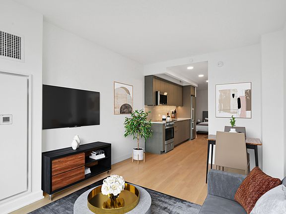 Our apartments can be experienced virtually with a 3D walkthrough or with a video call with one of our agents. APARTMENT DESCRIPTION: Spacious studio featuring a Home Office, walk-in closet and in home washer / dryer. BUILDING DESCRIPTION: Designed by Perkins Eastman, with amenities designed by Lemay + Escobar, Brooklyn Crossing offers 51 stories of custom-appointed residences and amenities to create the next chapter in your life story. Studio and 1- to 3-bedroom apartments, with resident amenities designed for being still or being in the center of the action, whenever you choose. Here, space abounds to stretch solo or spin with friends in the expansive fitness center, make it a movie night in the resident Screening Room, or people-watch on the open-air rooftop complete with a Sky Lounge, outdoor pool, and 360-degree views stretching from the Manhattan skyline to Rockaway Beach. Situated in prime Prospect Heights, you're minutes from epic culture and culinary fare in every direction, including historic landmarks like the Brooklyn Academy of Music and dynamic new destinations like Barclays Center. Add to that 10 train lines one block away, and really, you can go anywhere you want from here.