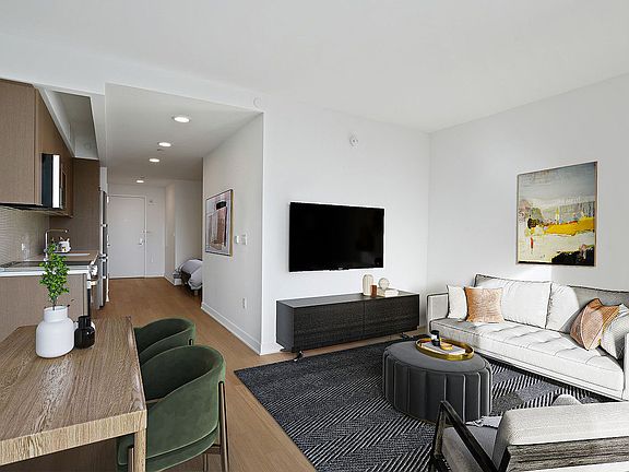 Our apartments can be experienced virtually with a 3D walkthrough or with a video call with one of our agents. APARTMENT DESCRIPTION: Spacious Alcove studio with Eastern exposure featuring generous closets, floor-to-ceiling windows, and an in-home washer/dryer. *Photos may not be of actual apartment but are representative of interior finishes. BUILDING DESCRIPTION: Designed by Perkins Eastman, with amenities designed by Lemay + Escobar, Brooklyn Crossing offers 51 stories of custom-appointed residences and amenities to create the next chapter in your life story. Studio and 1- to 3-bedroom apartments, with resident amenities designed for being still or being in the center of the action, whenever you choose. Here, space abounds to stretch solo or spin with friends in the expansive fitness center, make it a movie night in the resident Screening Room, or people-watch on the open-air rooftop complete with a Sky Lounge, outdoor pool, and 360-degree views stretching from the Manhattan skyline to Rockaway Beach. Situated in prime Prospect Heights, you're minutes from epic culture and culinary fare in every direction, including historic landmarks like the Brooklyn Academy of Music and dynamic new destinations like Barclays Center. Add to that 10 train lines one block away, and really, you can go anywhere you want from here. Smoking allowed:No