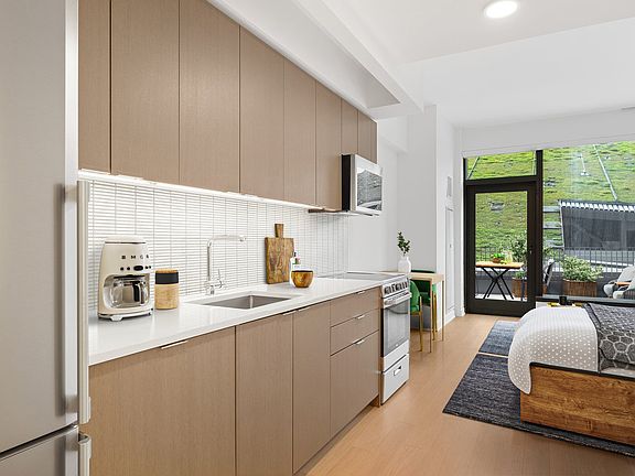 Our apartments can be experienced virtually with a 3D walkthrough or with a video call with one of our agents. APARTMENT DESCRIPTION: Limited-time promotion: $1,000 Visa Gift Card to put towards moving expenses. To receive this reward, an application for an apartment must be completed on the same day as a tour. Quiet Studio home with Private Terrace and in home washer/dryer. *Photos may not be of actual apartment but are representative of interior finishes. Application Fee: $20 per leaseholder and guarantor. Security Deposit: Equal to 1-months rent unless stated otherwise in the lease. Credit & Debit Cards Fees (for BILT): Credit Cards 3% and debit $9.95 per transaction. Credit & Debit Cards Fees (for ClickPay): Credit Cards 2.95% ($15 for VISA) and debit $9.95 per transaction (foreign transaction fee: additional 1.00% fee applies when using an international credit card). Utilities: Cable, internet, telephone, and electricity costs: Based on usage. Additional Security Deposit & Rent Increase: As required per the lease and allowed under applicable law. Renters Insurance: Required policy (you may obtain through your preferred provider). The Guarantors or Rhino: Optional, if you use these services, their applicable fees will apply.Late Fees: 5% or $50 per instance, whichever is less. Non-Sufficient Funds Fee: $50 per instance. Key Replacement Fee:$20Key Fob Replacement: $20Key Cylinder/Lock Replacement: $150 Damage Fees: Billed at cost for damages beyond normal wear and tear. Legal Fees: Billed at cost, as permitted by law. Cable/Internet/Phone: Optional - supplied by independent providers. For electricity there are 3 possibilities depending on the property: 1) No fee, 2) Electricity charge from independent provider, based on usage, 3) Electricity charge from landlord, based on usage. Lounge/Party Room Event Fees: As billed by the hour, optional - if availableBicycle Storage Fee: Optional $25 per month, per bike. NOTICE: This is a no fee apartment available for rent directly to the public. Owner will not charge or collect or pay any brokers fees. Owner does not authorize any broker to relist this apartment for rent. Brokers must present a prior agreement between the broker and any prospective tenant in which the tenant has hired the broker and agreed to pay the brokers fee. Without such agreement, broker will not be permitted to show the apartment. BUILDING DESCRIPTION: Designed by Perkins Eastman, with amenities designed by Lemay + Escobar, Brooklyn Crossing offers 51 stories of custom-appointed residences and amenities to create the next chapter in your life story. Studio and 1- to 3-bedroom apartments, with resident amenities designed for being still or being in the center of the action, whenever you choose. Here, space abounds to stretch solo or spin with friends in the expansive fitness center, make it a movie night in the resident Screening Room, or people-watch on the open-air rooftop complete with a Sky Lounge, outdoor pool, and 360-degree views stretching from the Manhattan skyline to Rockaway Beach. Situated in prime Prospect Heights, youre minutes from epic culture and culinary fare in every direction, including historic landmarks like the Brooklyn Academy of Music and dynamic new destinations like Barclays Center. Add to that 10 train lines one block away, and really, you can go anywhere you want from here. There is an optional amenity fee of $95 per person, per month.