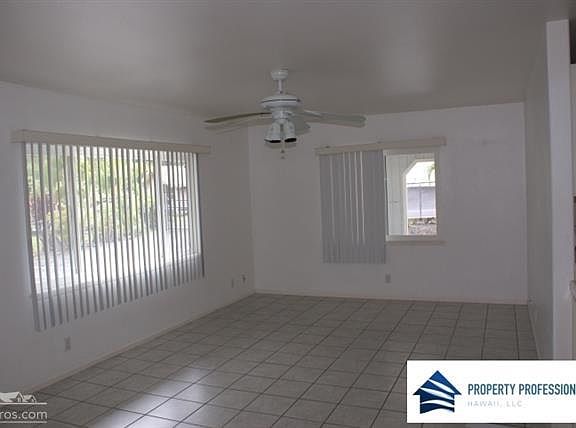 3br/2ba. 1164 sf living area, 7700 sf land area, built in 2006. Fully fenced yard. Ceramic tile flooring. County water. Includes range, refrigerator, washer & dryer. Tenants are responsible for electricity, water, yard service, cable, telephone and internet service. (No pets). From Hwy 11(Volcano Hwy) head up North Kulani Rd. Turn left onto Ana Rd, then right onto Leonaka Rd. House will be on the right side. Please visit our website at www.propertyproshawaii.com for additional information, photos and to download our rental application. Rental applications need to be approved prior to scheduling appointments to view properties. PROPERTY PROFESSIONALS HAWAII, LLC Kevin K. Aoki, Realtor (B) 93 Kohola St. Hilo, HI 96720 (808) 935-4411