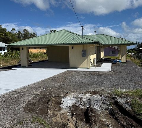 BRAND New Construction Contractor Built! 3 bedroom, 2 bath. Kitchen has beautiful Quartz Countertops, great gas range/oven, dining, living room vaulted ceilings. Interior laundry with sink, 2-car carport and storage. Double Pane Vinyl Windows. BRAND NEW CONSTUCTION!! PAVED ROAD, EZ ACCESS TO HIGHWAY, APPROX. 20 MIN TO HILO TOWN, EZ TO SEE!