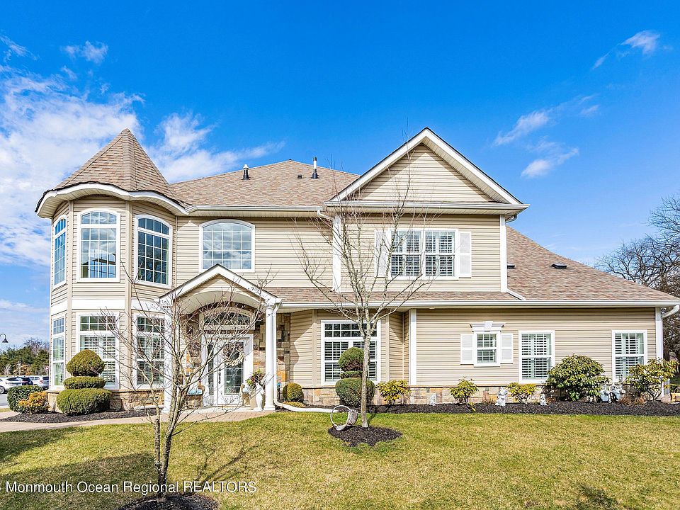 Meticulously maintained END UNIT in a great location in the Enclave @ Shark River! This beautiful 3 BR 2.5 BA home features many upgrades. Beautiful open floor plan, upgraded kitchen with granite counters, SS appliances, and breakfast nook. The great room boasts cath beamed ceiling, custom stone fire place, and door leading to large private patio facing a quiet wooded backyard setting. Convenient FIRST FLOOR master with vaulted ceiling, WIC, and full attached Master bath featuring double gran vanity & shower stall. Second floor offers a spacious and cozy media room, office nook, 2 additional bedrooms and full bath. Beautifully appointed formal dining and living rooms with custom moldings, hardwood floors throughout. 2 Car direct access garage. Conveniently located to Rt. 18, 33 & the GSPW