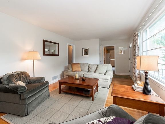 Nothing to do but move right in! Solid 1950's construction with contemporary finishes. This easy maintenance ranch home is conveniently located on a quiet side street close to highways, restaurants and shops. Eat-in kitchen, bright and cheerful living room with fireplace and gleaming hardwood floors. Three roomy bedrooms and updated bathroom. Central air conditioning and hot water tank is less than a year old. Partially finished lower adds to living space available. Step outside to an expansive yard and deck. Make this fantastic home your own!