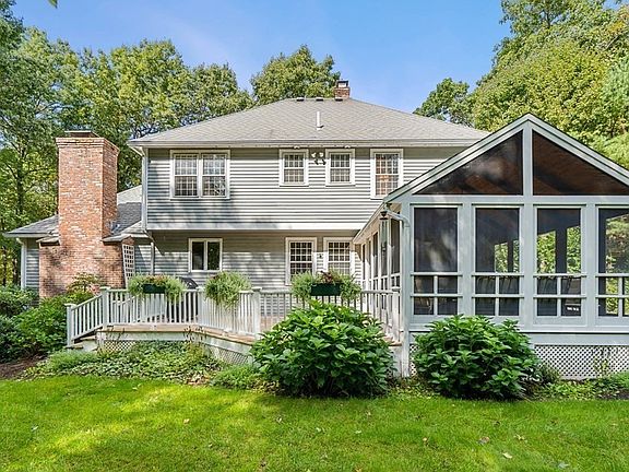 Perfect combination of home and location! Classic New England colonial home in sought after cul-de-sac neighborhood on the Westford side of Groton. Spacious, open floor plan highlighted by: eat in kitchen with granite counters and hardwood flooring, front to back family room with fireplace and nicely sized dining room off kitchen with wainscoting and hardwoods. Versatile living room/home office with 2nd fireplace makes this home special, ½ bath, laundry and exceptional screen room with cathedral ceiling complete 1st floor. Second floor has 4 large bedrooms and 2 full baths, MBR with his/her closets and private bath. Additional family space in walk out partially finished LL bonus room, nicely finished and also has storage. Exterior green space shines: NEW custom walkway, beautiful mature plantings and private composite deck overlooking above ground pool! 18 Acorn Path a wonderful place to call home in fantastic commuter location.