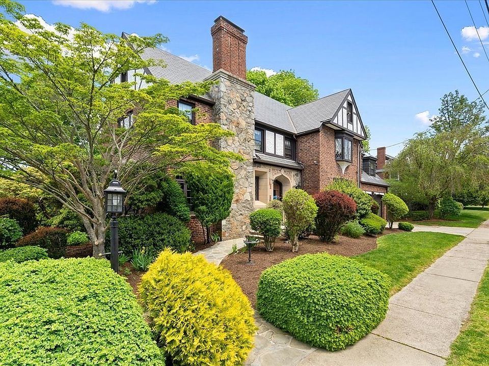 Welcome to this Fall River " Highlands " custom built and lovely maintained 1940 Tudor. Period Oak front door flanked by carved stone details invites you into the lg. entrance foyer. Step down into a beautifully appointed fireplaced living room w/ original oak paneling, leaded windows, and lg. ornate mirror. Kitchen offers eat in & sitting area, and access to private yard. Also on first level is a private office/library w/ built in book cases& enclosed mirrored wet bar. Second level has access to private outside deck and separate bedroom w/ bath. Second floor foyer leads to the primary bedroom suite w/ walk in closet area/private bath. There are also 2 additional bedrooms and bath. All original hardwoods throughout, generous closets including cedar and full attic walk up. Finished bsmt., laundry rm., plenty of storage, bonus room w/ tile flooring. Attached 2 car garage. 2016 Lochinvar heating system&sun room renovations. Minutes to highway access for Boston, Providence, and Cape Cod.