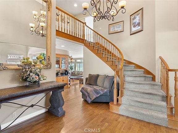 Upstairs you will find three more bedrooms including the master suite with gas fireplace and French doors to the outside balcony looking over the golf course, along with two bathrooms and a large bonus room that looks out over the front of the house with panoramic views of hills, mountains, horse trails, and neighborhood. This home with rustic elegance has been updated with PEX piping, a whole-house water filter, a new central vacuum, new Trane HVAC system, upgraded windows and doors, lighting, garage doors, remote opener, and cabinets and slate flooring. It is centrally located in Coto de Caza, on a single-loaded cul-de-sac, with local-schools bus stop, across from the horse trails for riding, hiking, biking, etc.; walking distance to the Coto de Caza Golf & Racquet Club, the old club, and the equestrian center.