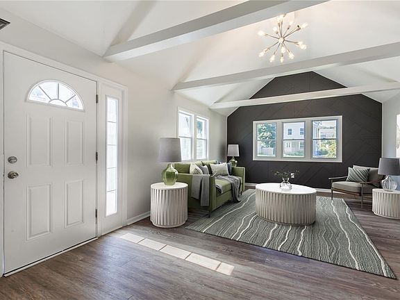 Welcome to this fully renovated three bedroom one bathroom HGTV quality home. This home is set back off the road for added peace and privacy. As you step in the stunning vaulted ceilings will take your breath away! Enjoy the modern lay out of an open floor plan as the large living room is connected to the dining area. You will love this timeless white kitchen which boosts all new stainless steel appliances, full wall gray subway tile back splash, modern fixtures and a custom reclaimed wood accent wall. This home offers complete first floor living with a full bathroom, two bedrooms and laundry all on the first floor. Upstairs offers a large third bedroom with recessed lighting, vaulted ceiling and a large closet. Other updated include newer roof, vinyl windows, glass block windows and updated electrical panel. All offers due Tuesday 10/10/23 at 1PM