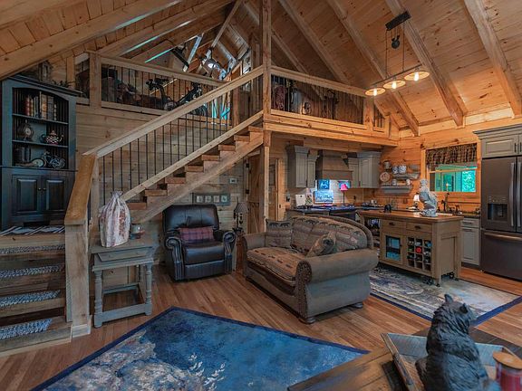 With striking curb appeal, you'll be intrigued by this cozy all-wood retreat from the moment you arrive! Tucked away in the beautiful community of Black Gum Ridge, youll delight in the convenience to downtown Blue Ridge & all N GA has to offer. Not quite a year old, this home offers the latest styles & finishes, 2BR & 2 BA (1 on each level), Kraft Maid designed kitchen, Cambria Quartz countertops, microwave drawer, slate black GE appliances, top of the line Speed Queen w&d, beautiful custom cabinetry, stunning copper tub upstairs, & an abundance of glass allowing natural light indoors to highlight the soaring ceilings in the great room and kitchen. Moving outside, the home offers plentiful deck space to enjoy the great outdoors, as well as a fenced back yard w/ room to explore & for those outdoor hobbies. Warm & inviting, this charmer was thoughtfully designed & planned & is just waiting for YOU!