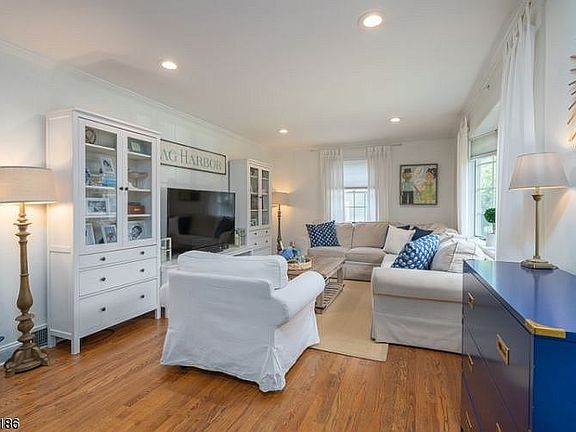 Move-in ready! Charming 3 4 bedroom Cape Cod home offering a flat, fully fenced expansive backyard with patio and deck. Beautiful landscaping and mature hydrangeas throughout property. Finished lower level (playroom, storage, laundry room, office) is a must-see. Bright eat-in kitchen with custom built-in banquette with all new S S appliances. Also on the first level, a sun-lit living room with large bay window, dining room, family room with built-in, and full bathroom with designer touches throughout. Upstairs you will find three bedrooms including a spacious master bedroom with ample closet space. Full bathroom with walk-in shower completes the upstairs level. This home is in one of Bernardsville s most desirable neighborhoods! HWH, 2019, CAC, 2019, Furnace, 2012.