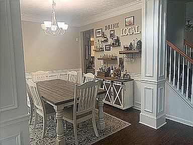 privacy fencing all around. Come back inside and find a bedroom and full bath downstairs. An elegant formal dining room, adjacent room now being used as a whiskey/cigar bar :) Upstairs in your new home, are two guest bedrooms with a shared bath, a sitting/gaming area, laundry room, and then the Master bedroom. WOW, its huge with extra sitting/office/gym area, all freshly painted. Adjoining bath with cathedral ceiling, seprate garden tub, double vanity with granite tops & Awesome walk in closet.